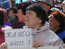 І хоча темою мітингу була заявлена антинатовська позиція кримчан, оратори швидко збилися на антиамериканську риторику. В одному з виступів прозвучало: «Ви подумайте тільки: про яку незалежність йтиме мова після вступу до НАТО? Ми виконуватимемо те, що нам скаже Буш!»