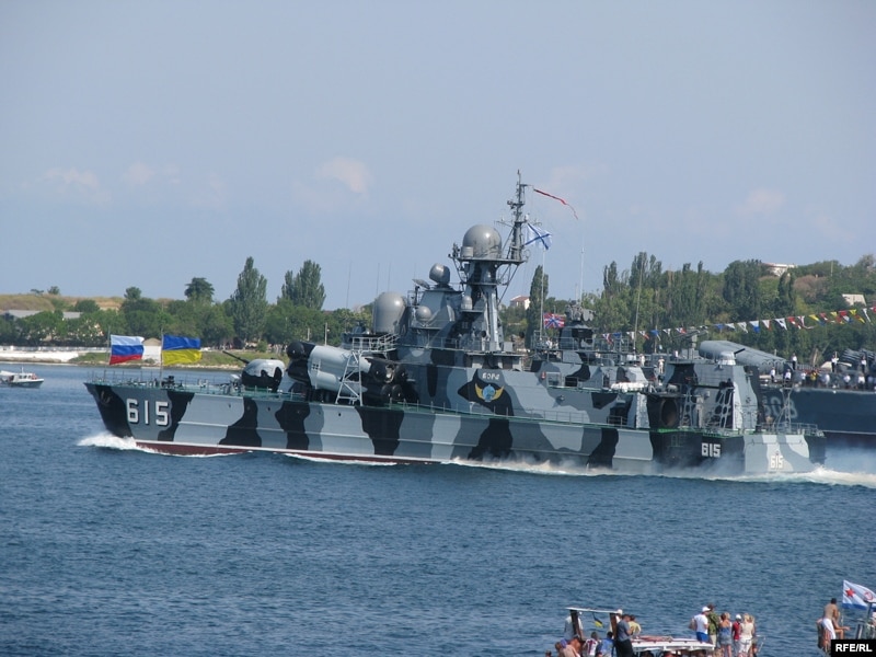 Парад відкрив ракетний корабель на повітряній подушці «Бора», який ніс державні прапори Росії і України. Це був єдиний на святі український прапор. Родзинкою параду став прохід підводного човна «Алроса» – єдиного на ЧФ Росії, що залишився на ходу, але й він може пересуватися лише в надводному стані.