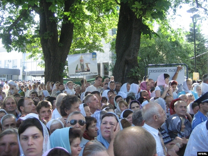 Прихожани московського патріархату провели кілька годин під палючим сонцем, чекаючи прибуття патріарха Кирила, Рівне, 2 серпня 2009 р.