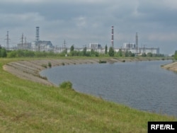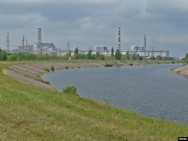 Ставок-охолоджувач ЧАЕС, за ним - саркофаг.
