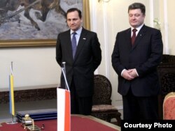 Міністри закордонних справ Польщі Радослав Сікорський (п) і України Петро Порошенко (л) зустрічаються в Варшаві 25 листопада 2009 року. Фото МЗС Польщі (www.msz.gov.pl)
