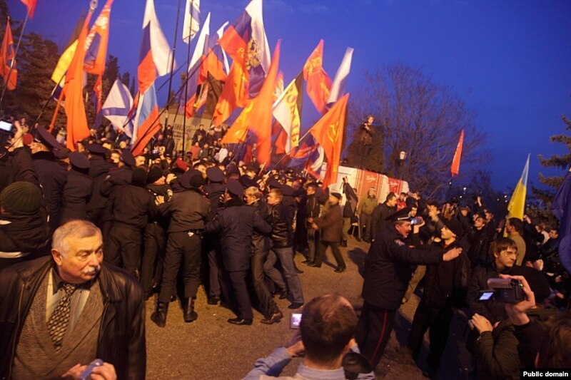 «Свободівці» мали пройти маршем від майдану Суворова до майдану Нахімова у центрі Севастополя. Однак проводити акцію правим перешкодили прихильники лівих і проросійських сил. Серед них, зокрема, були активісти Компартії, ПСПУ та Російського блоку. Близько сотні учасників маршу пройшли якихсь 200 метрів, як дорогу їм перегородили три сотні опонентів.