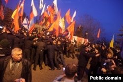 Прихильники «Свободи» відповіли тим, що знаходили на землі. Міліція намагалася розвести сторони, але кілька сутичок усе ж відбулося.