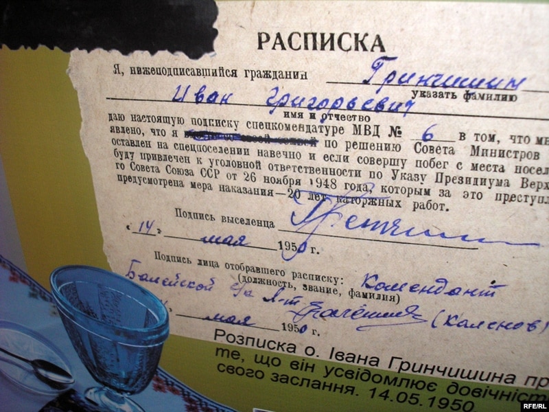 Розписка отця Івана Гринчишина