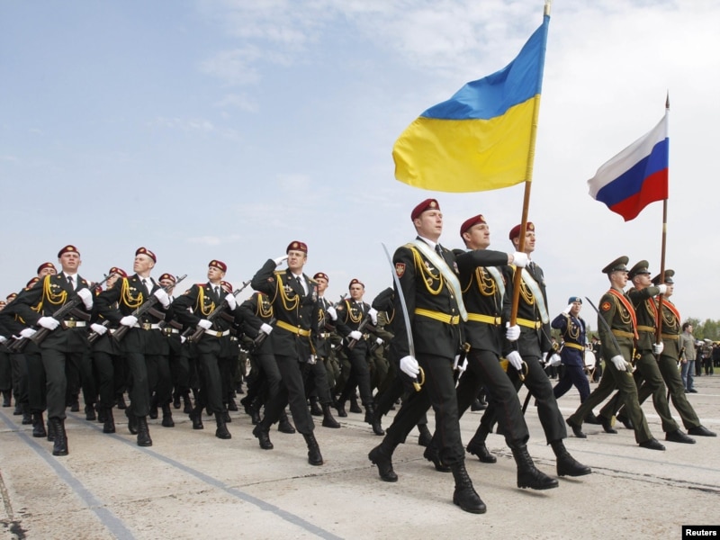 Організатори кажуть, що підрозділи Російської Федерації та Республіки Білорусь прибули на український парад без зброї, тож вони маршируватимуть Хрещатиком із українськими автоматами. До того ж мовою команд на параді буде лише українська, говорить командир окремого полку Президента України Віктор Плахтій.