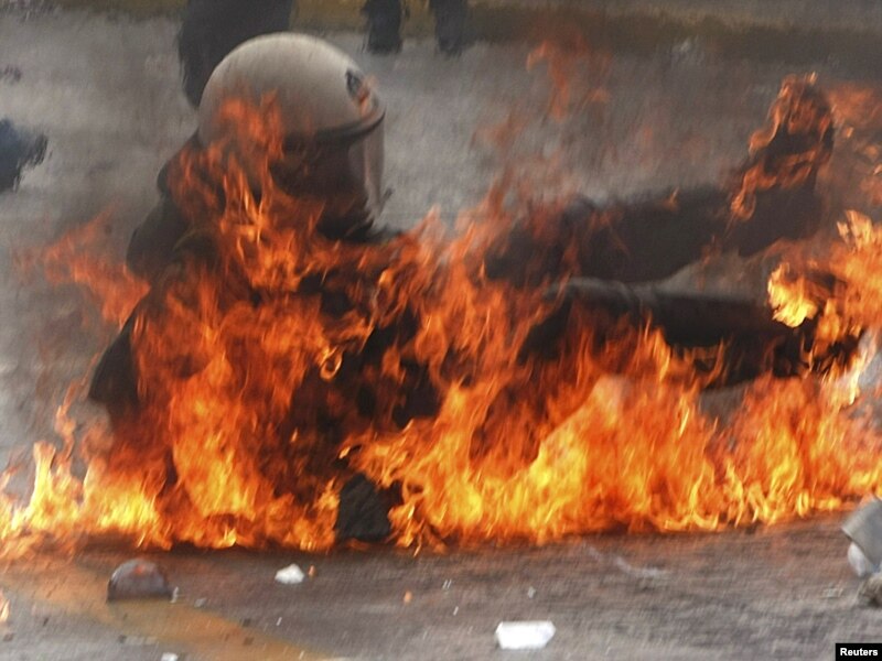 За офіційними даними, троє людей загинуло в Афінах, коли розлючений натовп закидав приміщення банку пляшками із запалювальною сумішшю. Кілька будинків у центрі міста охопила пожежа. Поліція ледве стримувала демонстрантів, сутички тривали на вулицях і на підступах до парламенту. Поліція використовувала сльозогінний газ і світлошумові гранати.