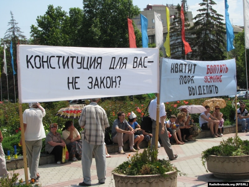 Учасники акції протесту, які уже кілька днів під палючим кримським сонцем пікетують Раду міністрів Криму, закликали Віктора Януковича «зсунути з місця» розв’язання проблеми наділення репатріантів земельними ділянками для будівництва індивідуального житла в Криму, чим «позбавити політичних стерв’ятників можливості розривати кримське суспільство на шматки етнічних протистоянь».