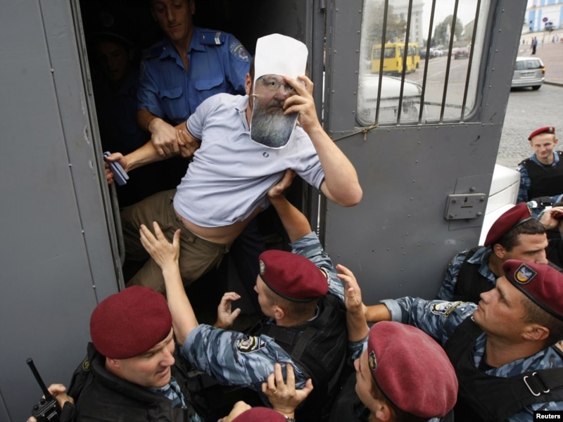 Міліція затримала 8 представників «Свободи», які намагалися протестувати проти візиту Московського патріарха Кирила в Києві, 26 липня 2010 року