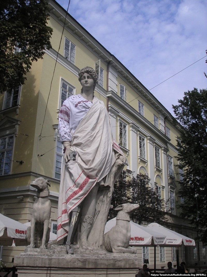 Львів’яни різного віку з року в рік на День Незалежності одягають вишиванки, а багато хто – український стрій. Львівські вулиці сьогодні перетворились на подіум української вишиванки. Традиційно у вишитих сорочках чотири скульптури фонтанів на площі Ринок, що стало ще однією принадою для гостей міста.