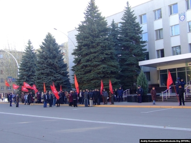Мітинг комуністів біля обласного управління МВС проти фальсифікації виборів у Луганську, 2 листопада 2010 року