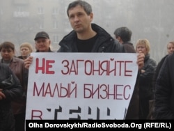 – Ми зібрались тут, щоб висловити владі протест проти ухвалення Податкового кодексу, 16 листопада, так званого «Азаровського кодексу», який знищить понад чотири мільйони підприємців, і це не повна цифра!