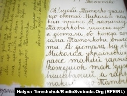 «Я ще не умію писати, але пишу кілька слів, щоби сказати, що я Таточка люблю. Бо я не маю нікого. Мама і тато мені померли. А тут я маю всьо і також Таточка. Я нічого не можу післати Таточкові, лишень рогульок і тісточко».