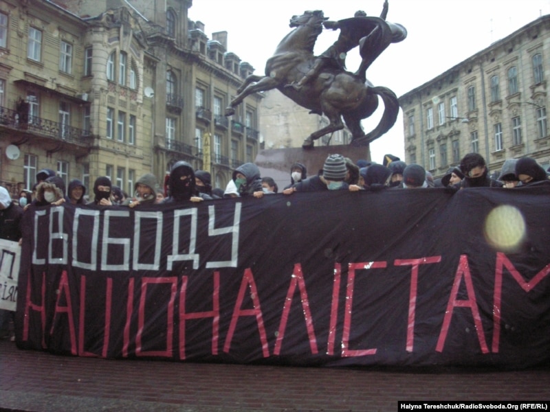 «Свобода націоналістам!», «Слава Україні!», «Смерть ворогам!», «Ні політичним репресіям!», «Ні поліцейській державі!» – скандували протестувальники.