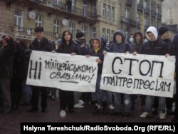 Більшість із учасників пікету, а це переважно юнаки, протестували, закривши обличчя і не називали своїх прізвищ. Вони зізнались, що бояться можливих переслідувань.