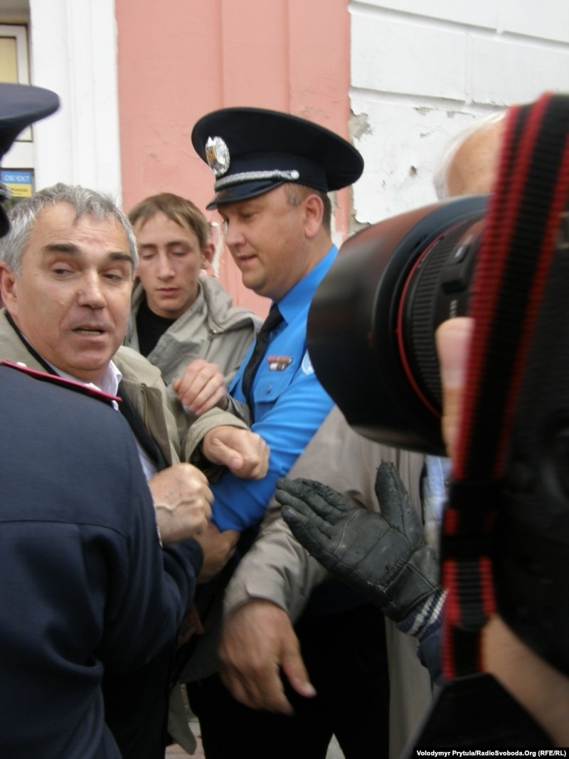 Для В’ячеслава Захарова остання бійка – далеко не перша. На фото він після сутичок із прихильниками НАТО в Сімферополі, травень 2008 року