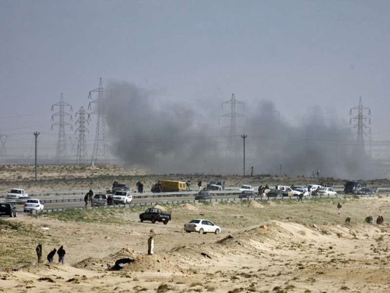 Це фото бою урядових сил і повстанців біля міста Адждабія зроблене в понеділок, але сутички там тривали й протягом вівторка