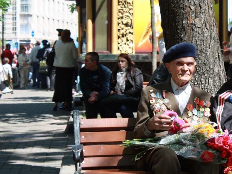 часник параду Перемоги, 92-літній ветеран-танкіст Григорій Адамов, Київ, 9 травня 2011 року