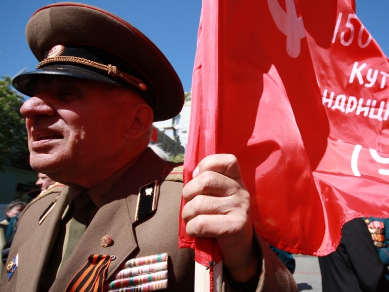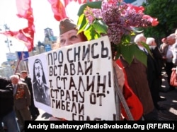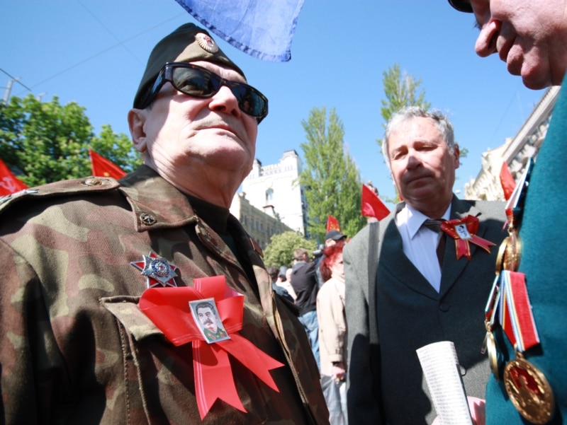 Київ – У центрі української столиці пройшла святкова хода з нагоди 66-ї річниці завершення Великої Вітчизняної війни та вшанування її ветеранів і полеглих під час цієї війни. В урочистостях поруч із українською була використана колишня радянська символіка, зокрема, копія радянського прапора Перемоги, хоча Президент України Віктор Янукович і не підписав відповідного закону. Це викликало обурення представників опозиції та частини громадськості.