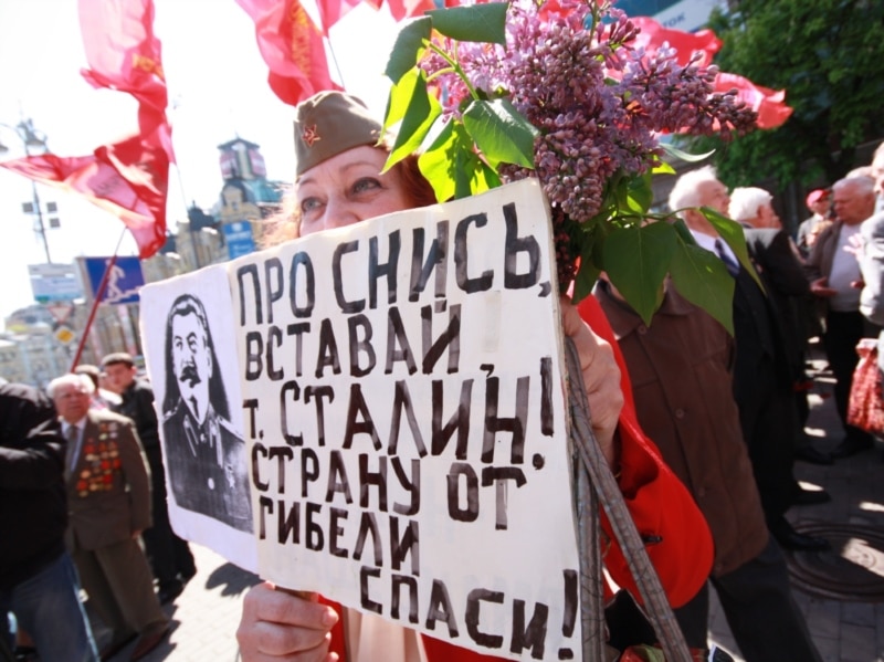 У Києві 9 травня радянський прапор, червону зірку, символи із зображенням вождів Радянського Союзу використали тільки під час урочистостей та як елемент білбордів на вулицях. На будинках парламенту, Адміністрації Президента і на жодній центральній державній установі цього дня червоні прапори не з’явилися.