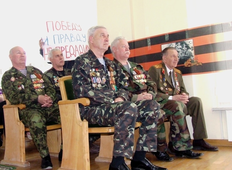 У сесійні залі також сиділи люди з плакатами, на яких було написано: «Захистимо велику перемогу» та «Фашизм не пройде». У перших рядах розмістились ветерани, на стіні розтягнули велику георгіївську стрічку.