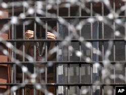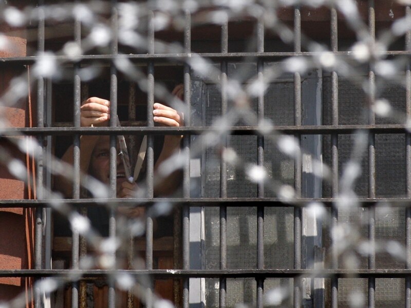 Активіст,и заарештовані під час флеш-мобу «Революція через соціальну мережу», за допомогою рогатки відправляють листи своїм родичам з СІЗО в Мінську, 7 липня 2011 року