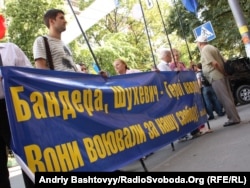 Біля будівлі Вищого адмінсуду представники націоналістичних партій та організацій влаштували у вівторок пікет з вимогою визнати Бандеру і Шухевича героями. Один із учасників акції, активіст партії «Свобода» Ярослав зазначив, що таке рішення мало б стати свідченням справжньої незалежності України. «Нам накидають сьогодні совково-малоросійську державу, і, бачте, ідуть суди проти наших героїв», – каже він.