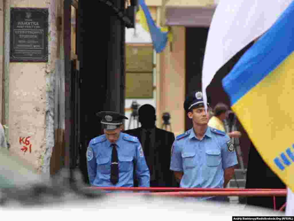 Біля входу до будівлі суду тривають мітинги її прихильників та противників.