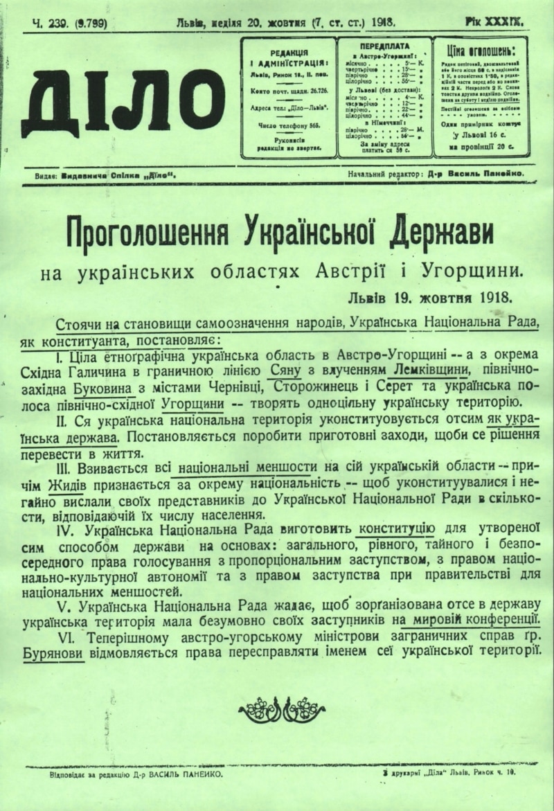 «Ся українська національна територія уконституовується отсим як українська держава. Постановляється поробити приготовні заходи, щоби се рішення перевести в життя», – мовиться в документі.