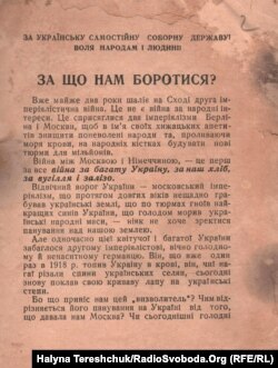 На виставці представлені також відозви і публікації пізніших часів, ОУН і УПА, в яких людей закликають боротися за незалежність держави Україна.