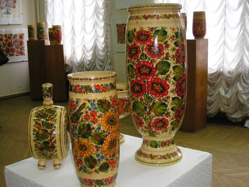 Виставка робіт петриківських корифеїв зайняла цілий поверх Дніпропетровського художнього музею. Тут і неповторні настінні панно, від яких віє ароматом степових трав та квітів, і декоративні вази та тарелі з традиційними петриківськими павичами, і розписані малюнками фруктів та овочів скрині й скриньки.