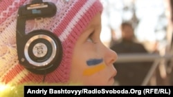 Під час акції на асфальті біля президентської Адміністрації діти крейдою малювали національну символіку, закликаючи Президента захистити українську мову.