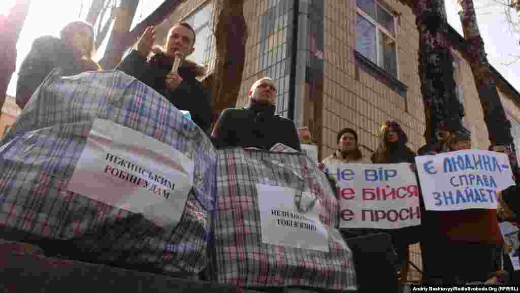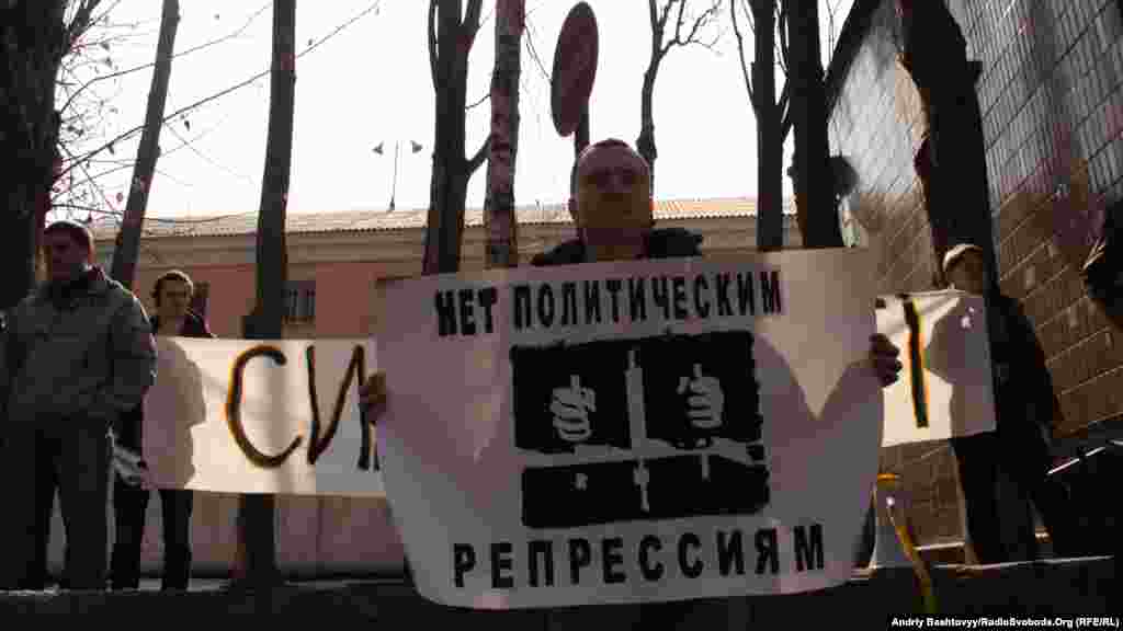 Біля Лук’янівського СІЗО у Києві зібралися громадські активісти, щоб підтримати в’язнів, які, на їхню думку, перебувають за ґратами незаконно. Акцію ініціювали рух «Сам», Комітет визволення політв’язнів, Центр інформації з прав людини, а також рух «Спільна справа».