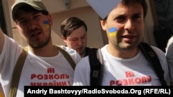 Учасники акції «Ні розколу України!» вважають, що закон спрямовано не на покращення умов спілкування між представниками національних меншин, а на знищення української мови.