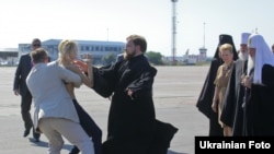 Так він прокоментував акцію феміністки, яка під час підходу патріарха до журналістів на злітній смузі в аеропорту Києва підбігла до нього з криками «Изыди вон!». Дівчину затримала охорона.