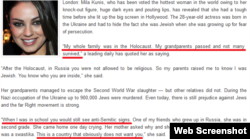 Голівудська актриса, єврейка за походженням, Міла Куніс народилась і кілька років жила у Чернівцях. У її сім років сім’я Куніс емігрувала до Сполучених Штатів Америки, де й живе дотепер. У своїх інтерв’ю дівчина неодноразово згадувала важке дитинство у Чернівцях, зокрема те, що їй доводилося приховувати своє походження, релігійні погляди і жити у страху, адже всю її сім’ю винищили під час Голокосту. Крім того, акторка ніколи не вважала себе українкою і не заперечувала єврейське походження.