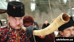 Гуцули рогами і трембітами сповіщають про прихід Різдва