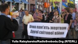 Дехто з активістів прийшов із квітами та фотографіями рідних, загиблих у роки Другої світової війни.