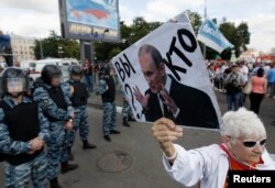 Москва – У День Росії в центрі Москви пройшла хода опозиції під гаслом «За нашу і вашу свободу». Вимоги учасників акції – звільнення політв’язнів, серед яких фігуранти так званої Болотної справи, учасниці групи Pussy Riot і колишні керівники компанії ЮКОС.