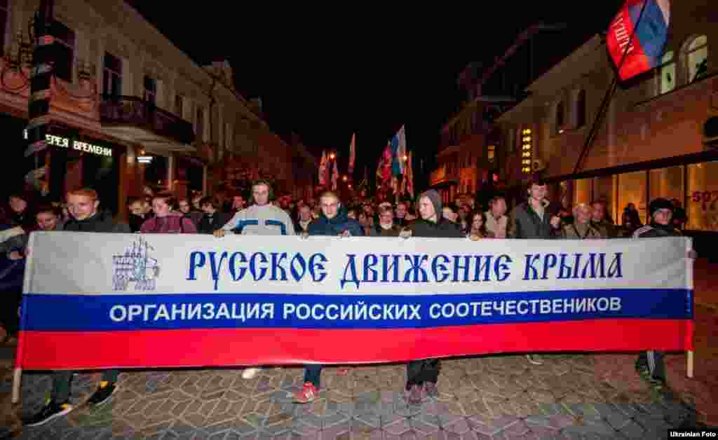 Партія «Союз козаків Криму», «Руський блок», Кримський козачий союз і низка молодіжних організацій провели в Сімферополі «Руський марш» напередодні Дня народної єдності Росії. Близько 800 людей пройшли центральними вулицями кримської столиці в рамках заявленого смолоскипового ходу.