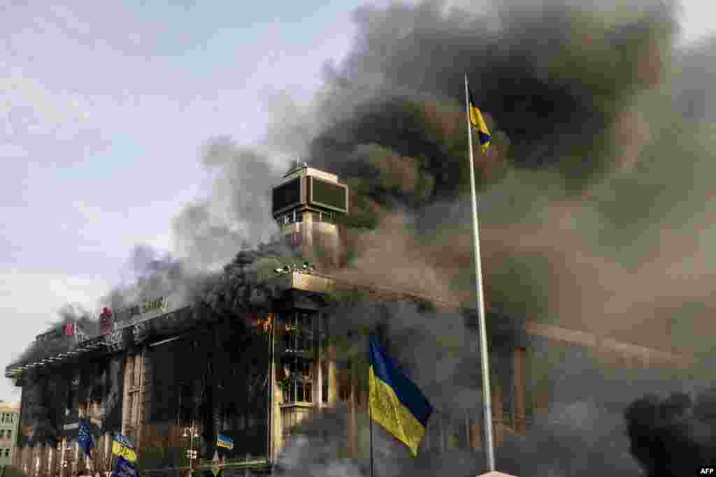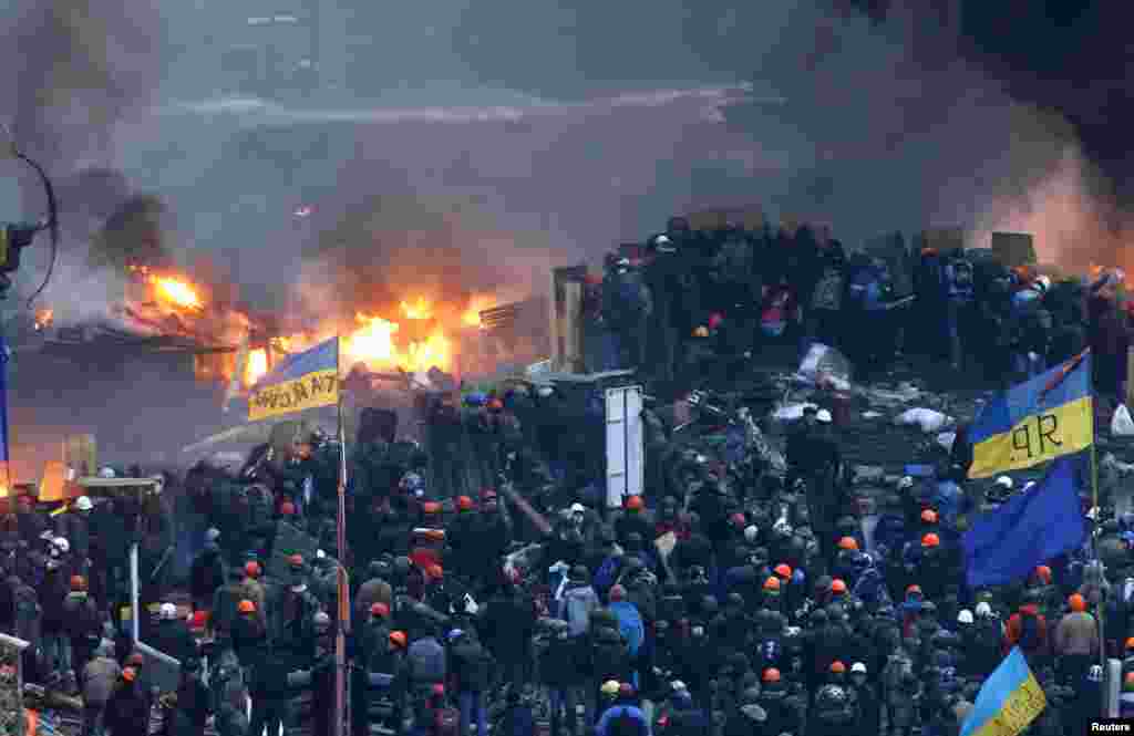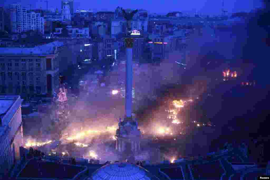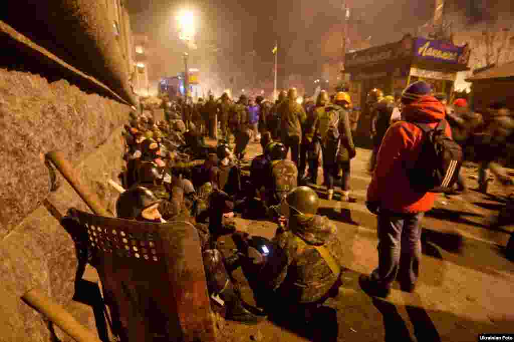 Сутички міліції та мітингувальників на Майдані в ніч з 18 на 19 лютого