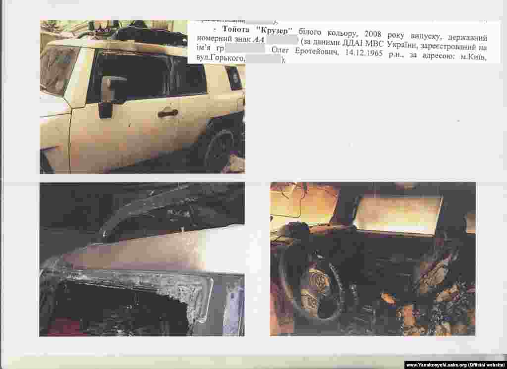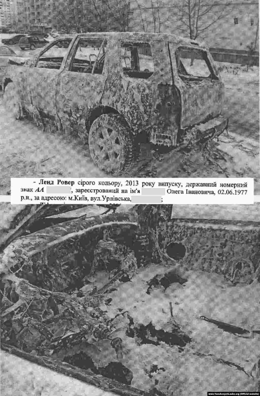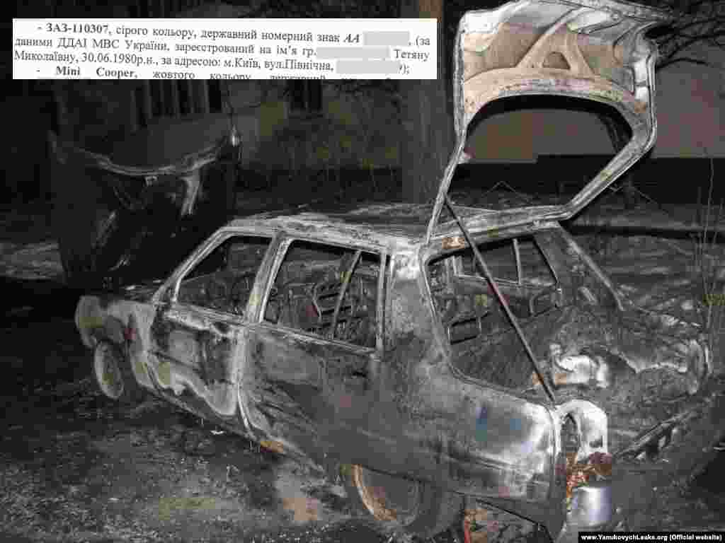 Знищені автомобілі, які фігурують у «чорному списку» охоронця Януковича