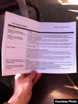 – Тут справа не про те, як висвітлювати події в Криму, бо про події все більш-менш зрозуміло. Тут справа йде про емоційну оцінку цих подій. І оцінка подій у Криму і в Києві дається дуже зрозуміла, як російська пропаганда це має аналізувати і подавати глядачеві, тут справа йде про їхню оцінку і трактування. У цьому документі аналізується, зокрема, що Крим 31-го числа остаточно перейде на російський час. Тут важливо розуміти, яку оцінку цим подіям дає Кремль, дає російська влада.