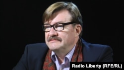 – У мене до цього складне ставлення. Все-таки на російських каналах показують не тільки новини, які новинами зараз важко назвати, не тільки інформаційні програми, які з інформаційних перетворилися на пропагандистські. Іноді там показують непогані і навіть дуже хороші неполітичні програми, серіали, документальне кіно. Виступають мої друзі і колеги, які ні в чому перед українським народом не завинили. Тому у мене складне до цього ставлення. З іншого боку, звичайно, неможливо уявити, щоб в часи Другої світової війни газета Völkischer Beobachter («Народний спостерігач») виходила б на території Великобританії або в Сполучених Штатах в перекладі на англійську мову. Це до питання про Russia Today. Мені цікаво, що будуть надалі робити в цьому зв’язку керівники тих англомовних держав, де можна приймати програми Russia Today. Тому що Russia Today, даруйте, це сучасна версія Völkischer Beobachter в значній мірі.