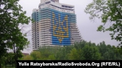 Молоді патріоти Дніпропетровська, зокрема, футбольні фанати «Дніпра», прикрасили один із найбільших довгобудів Дніпропетровська – недобудований готель «Парус» – українським гербом заввишки 16 поверхів. Зображення тризуба жовтого кольору на синьому тлі на фасаді будівлі з’явилось цими вихідними.