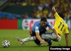 Натомість у збірній Колумбії дискваліфікованих зірок немає, і завдяки дублю Хамеса Родріґеса колумбійці виграли – 2:0. Після цих м’ячів Родріґес очолив перегони бомбардирів, він відзначився у воротах суперників п’ять разів. По чотири голи на рахунках аргентинця Ліонеля Мессі, німця Томаса Мюллера і бразильця Неймара.