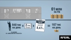 Це питання особливо актуальне зараз, коли, за словами начальника Київського метрополітену, підприємство перебуває у важкому фінансовому становищі. «На сьогоднішній день метрополітен збитковий. Катастрофічна нестача грошей призводить до того, що ми не можемо забезпечити необхідну парність поїздів на лінії. Пасажир довше стоїть на платформі і чекає поїзд. Також і по інших службах. Ескалатори ми не можемо ремонтувати і вимушені зупиняти, закривати; обмежувати швидкість поїздів», – розповідає Віктор Брагінський, начальник КП «Київський метрополітен».