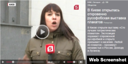 Російський «5-й канал» випустив сюжет із заголовком «В Києві відкрилась русофобська виставка». Йдеться про виставку, яка представляє собою сто найкращих плакатів, присвячених конфлікту на Донбасі.