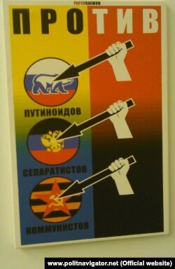 До того ж у сюжеті російських телеканалів наголошували про ненависть до Донецька та Луганська, а на виставці, між іншим, є робота мешканця із Горлівки Донецької області. Більшість із плакатів можна подивитись на сайті «Политнавигатор», щоб оцінити, чи містять вони заявлену російськими каналами, «ненависть до Донецька та Луганська».