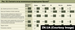 Якщо 62,8% українців впевнені, що треба воювати за Донбас, то охочих боротися за Крим менше. Погодилися з тим, що півострів необхідно відвоювати, лише 18,5% опитаних. У Донецькій і Харківській областях цю боротьбу вважають марною, на відміну від Галичини.