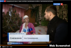 Російський канал «Россия-1» знову звертається до теми трагедії під Волновахою в Україні на Донбасі, що сталася 13 січня, коли ракета влучила у пасажирський рейсовий автобус. В результаті, за даними МВС України, загинуло 12 осіб і 18 зазнали поранень. В одному із сюжетів телеканал поширив розповідь постраждалої, ім’я та прізвища якої немає в офіційному списку МВС України.